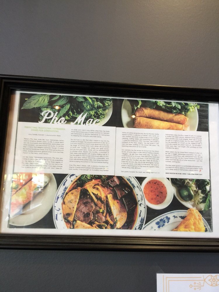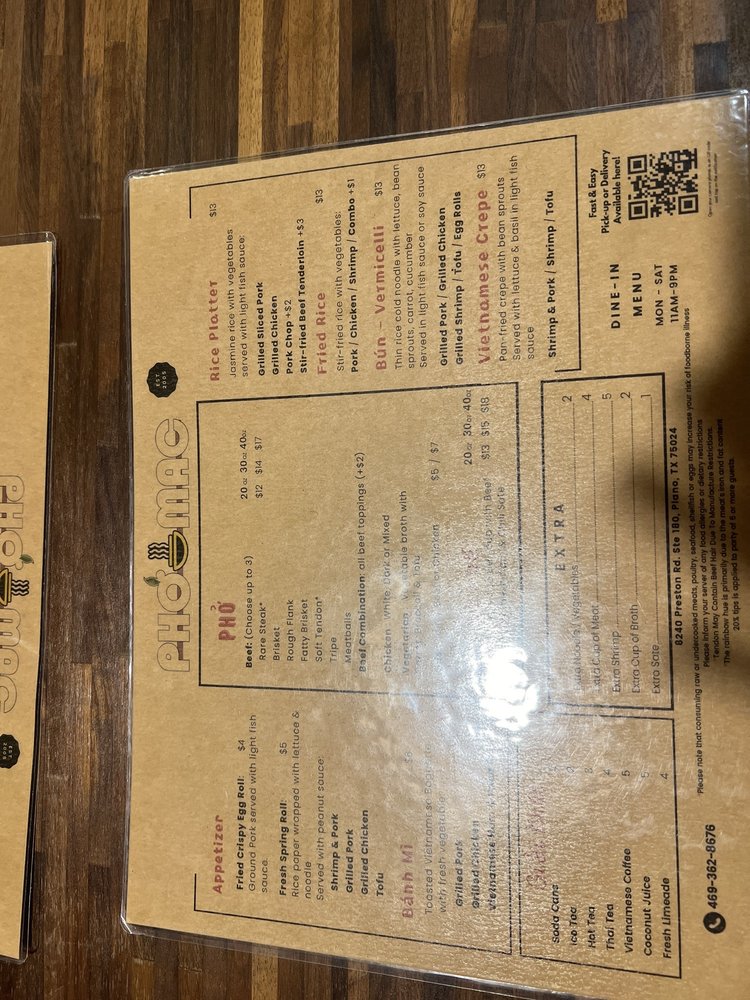 If you're craving a big bowl of flavorful Pho, Pho Mac is the place to go. Located in Plano, Texas, this Vietnamese restaurant is known for its delicious Pho broth and generous portions. Customers rave about the meatball Pho, spring rolls, banh mi sandwiches, and Vietnamese crepe. The atmosphere is casual and welcoming, with options for outdoor seating and quick service. While some reviewers criticize the limited menu options, many praise the authenticity and quality of the dishes. In particular, the 40 oz Pho with fatty brisket and rare beef receives high marks for its rich flavor and generous portions. Whether you're a Pho enthusiast or looking to explore Vietnamese cuisine, Pho Mac is a must-visit spot for a satisfying and delicious meal.
