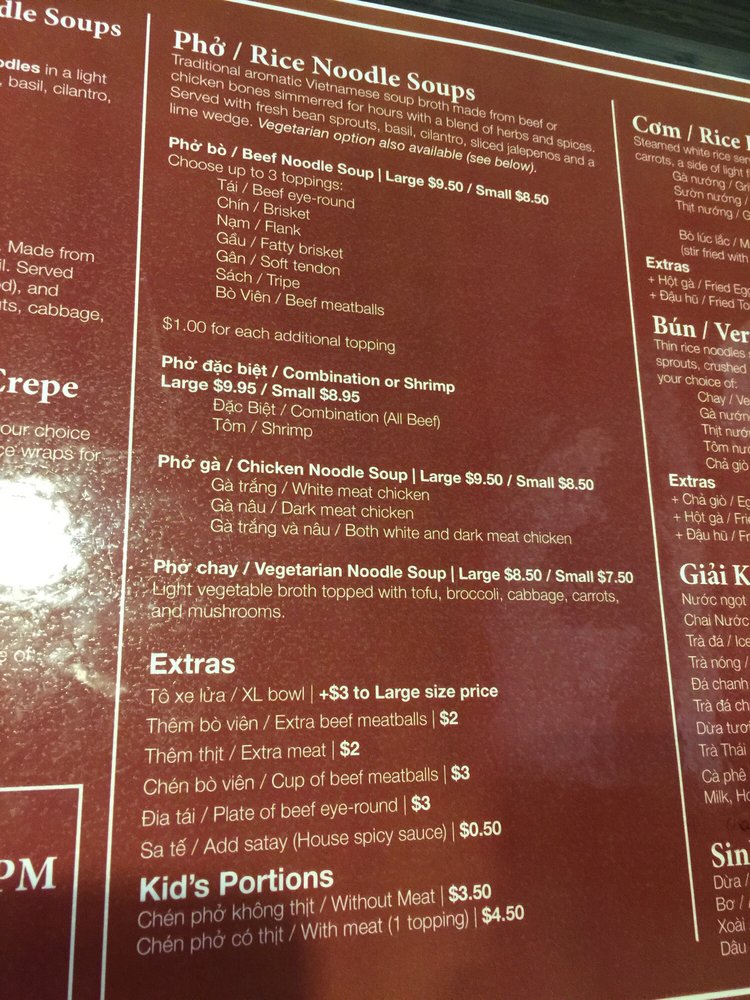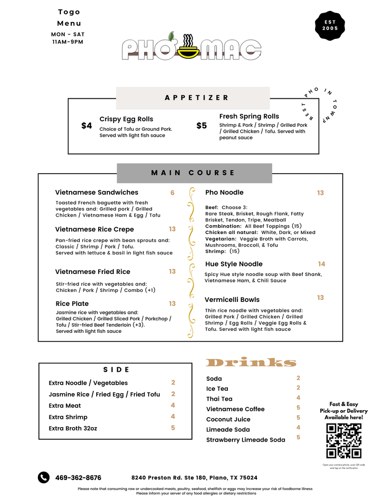 Pho Mac Menu (Update 2025)